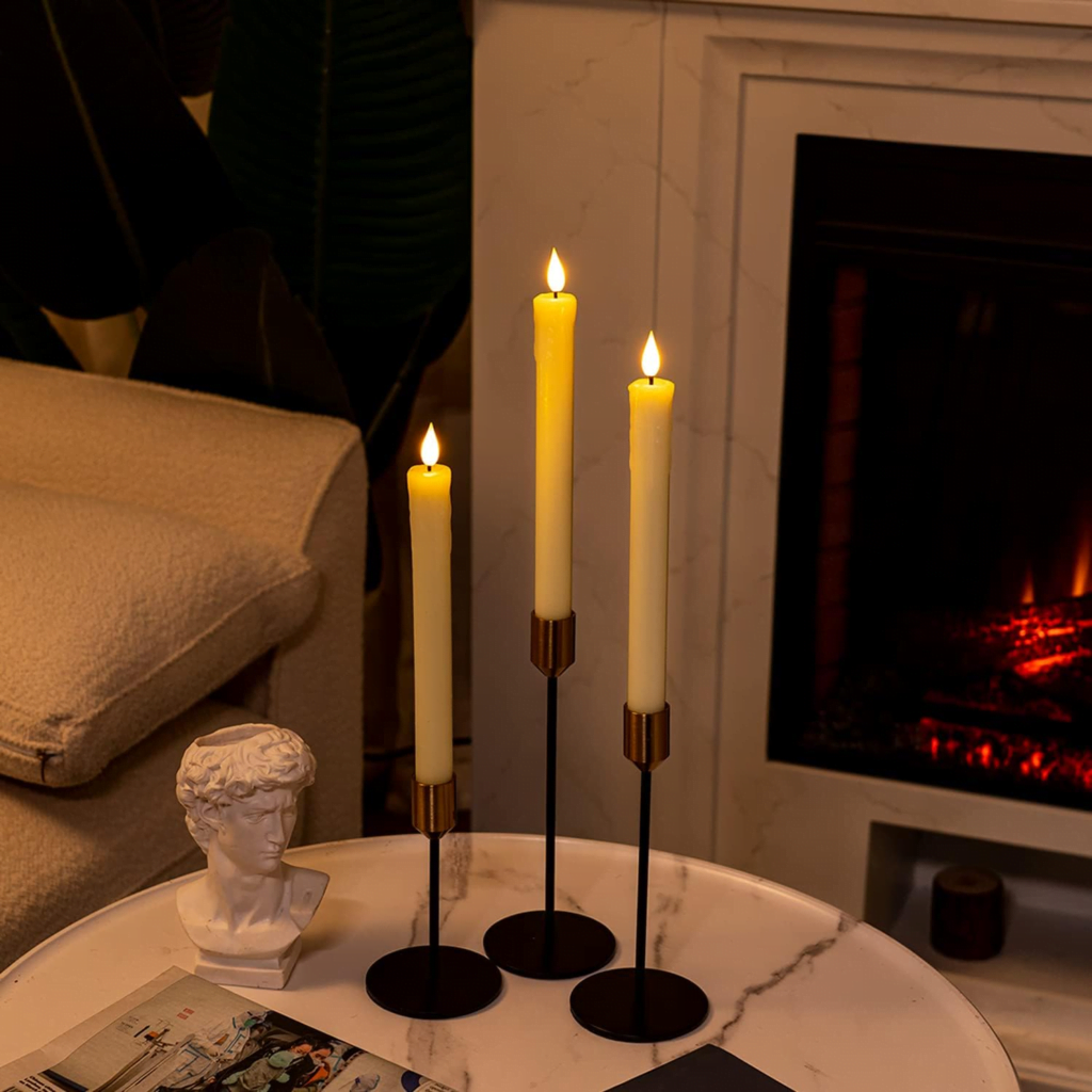 One of the delights of flameless candles is the variety of designs available. Whether you prefer sleek, modern styles or more traditional looks, there’s something for everyone. The Black Iron Plate Candle Holder and the Taper Candle Stick Holders offer stylish ways to display your flameless candles, enhancing the ambiance of any room. With options in various colors, shapes, and sizes, you can easily match your decor.